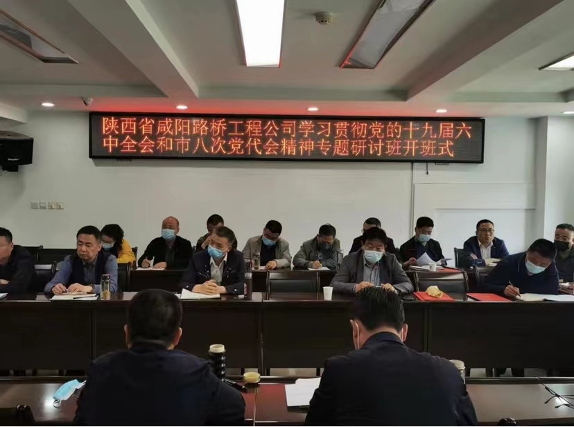 4月25日,咸陽路橋公司領導干部學習貫徹黨的十九屆六中全會和市八次黨代會精神專題研討班開班。公司黨委書記、總經理朱清寧主持并作開班講話,強調要以習近平新時代中國特色社會主義思想為指導,深入貫徹落實黨的十九屆六中全會和市八次黨代會精神,引導公司黨員領導干部奮力當好咸陽高質量發展的開路先鋒,為加快建設現代化“西部名市絲路名都”貢獻堅強有力的咸陽路橋力量。